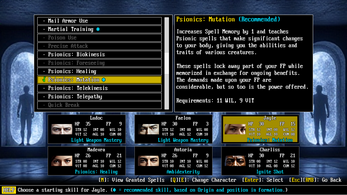 Battles with foes will be frequent and dangerous, but you will confront them with characters of your own design: there are no classes to hold you back. Any character may use any item or learn any skill, they need only train to meet the requirements, and their training is entirely up to you.